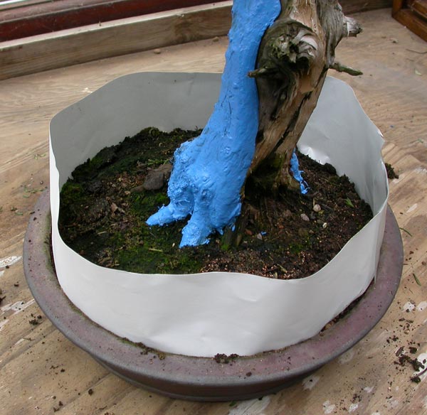 Plaster of Paris is used to protect the soil and pot.