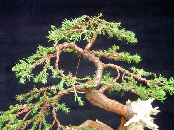 The top of the tree is created, all the main branch placement has been created over the last six years so in the final styling of the tree no think wire has been used.