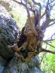 The parallels between this and the niagara escaprment in Ontario are incredible. On the niagara escaprment there is lush mixed hardwood above and below the rock outcrops, but then you have 1500 year old Thuja clinging to the rock, apparently out of reach of fire and other nuisances.