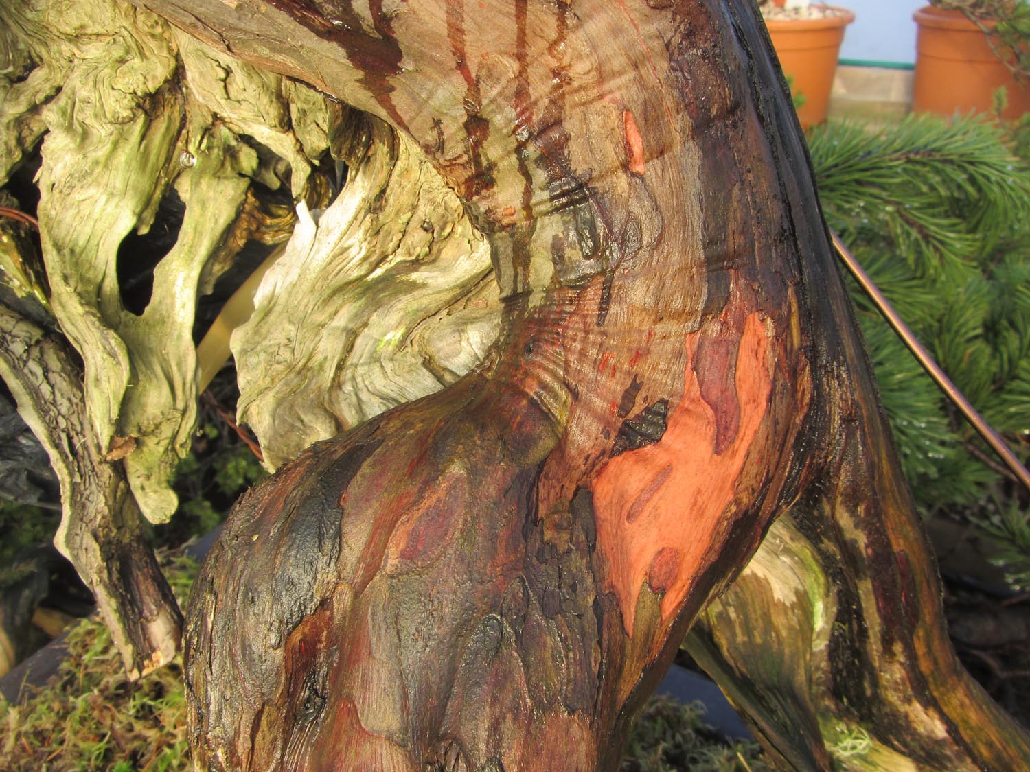 The new grown lower down the trunk is now very strong. I have planted the tree in a much larger container to give free root growth to thicken branches and to place the tree closer to the final design I am after. The potting mix is 60% Pumice 20% Acadama and 20% Kiryu.