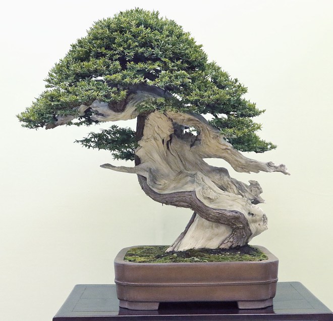 While setting up the exhibition I happen to notice a couple photos of my trees being assembled for a special exhibit. The photos were recognized but I wonder where they got them. So I asked and was told that Toru Suzuki asked for photos for a special World Bonsai Corner photo display. Then I remembered that I did send the photos months ago. Perhaps a bit of old age creeping up here, no just gracefully “maturing.”