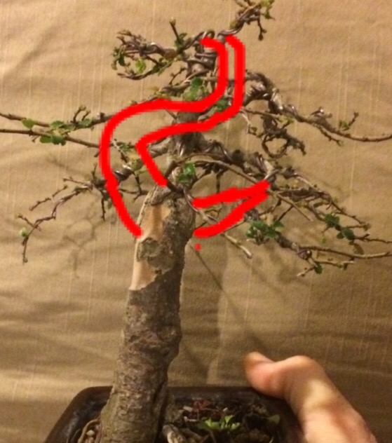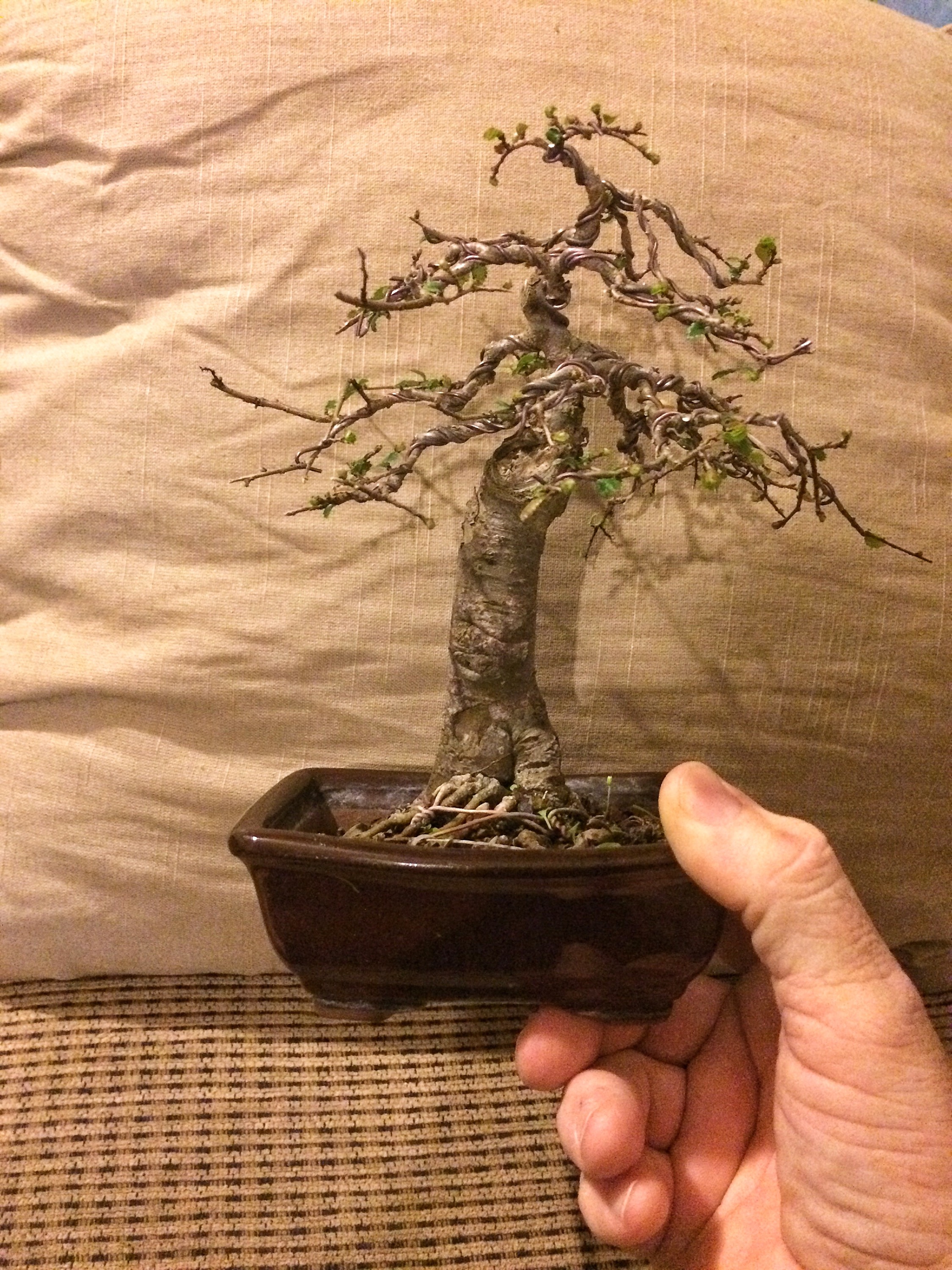 It a very modest Chinese elm. It began life a an s-curve and I chopped it. Kinda like this: