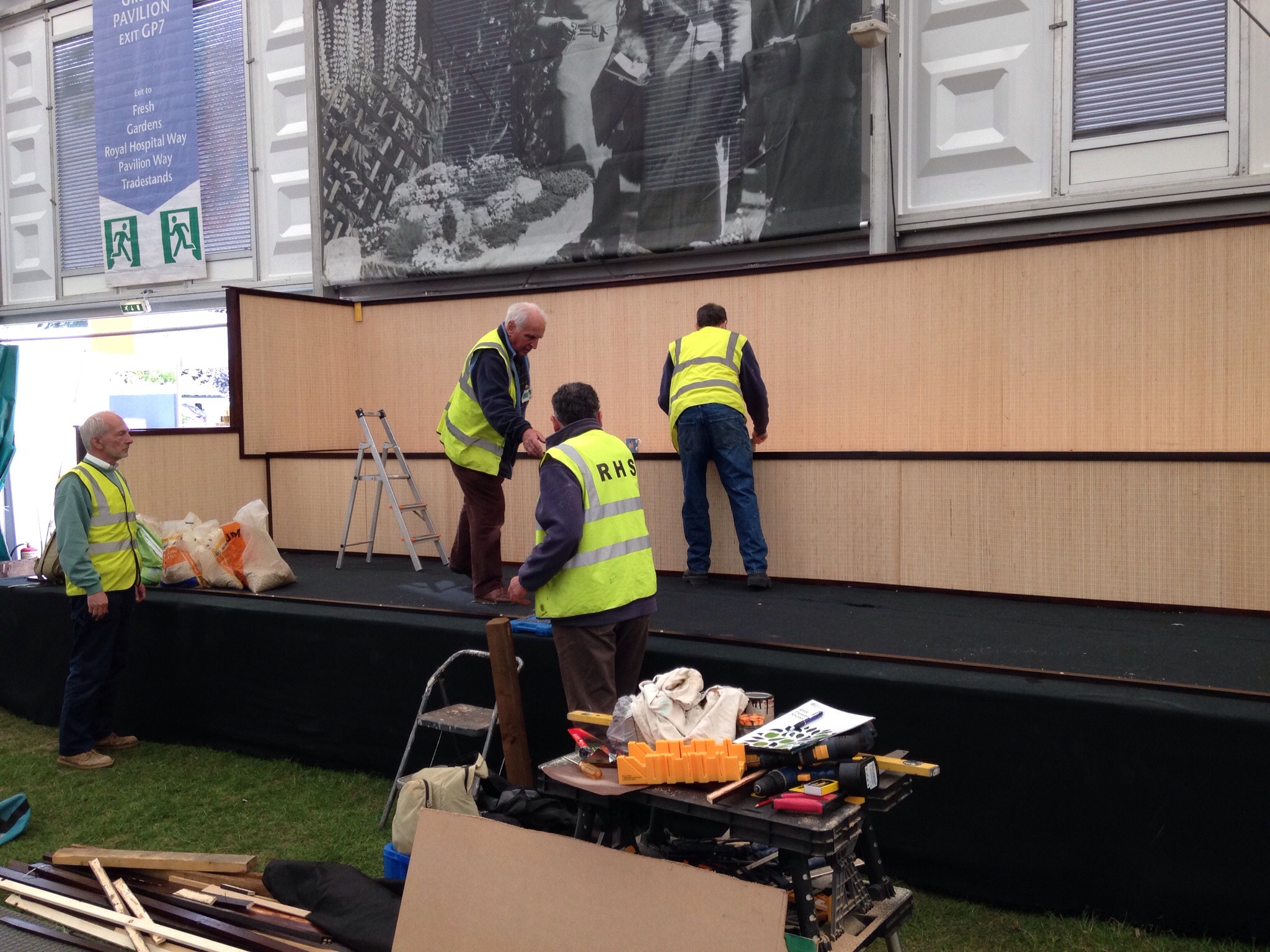 Once we had worked out where we were located inside the floral marquee, having not realised our stand number was on the pass we were wearing! We were happy to see the stand was quite level which would help greatly.