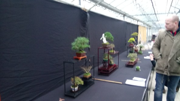 The other reason for my attendance as I didn’t have too much to sell was to test the water for the autumn event as running along side the sale will be an exhibition of shohin Bonsai. Between me and friends we staged some displays to see any pitfalls we might have. The melting snow on the roof showed us that despite the lovely natural light, any rain could give the trees an unexpected watering. You live and learn. I hope the displays were enjoyed by the visitors none the less. The roof problem will be solved by September.