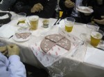 Lemons, beans, mozzarella (large and small), breads of all shapes and sizes, HOT pancakes cooked on a table stove filled with Nutella, over 20 different sausages and Salami, biscuits, olives, olives in Grappa, anchovies, so many different cheeses, a hot chilli paste?, dried meats carved at the table, homemade wine and spirits… and finally (my favourite) a spirit made from the fruit of the Myrtle tree. A large group from Austria got in on the act and brought Snapps (excellent). There was an ‘official’ meal included in the ticket but this was upstaged by all the gifted delights.