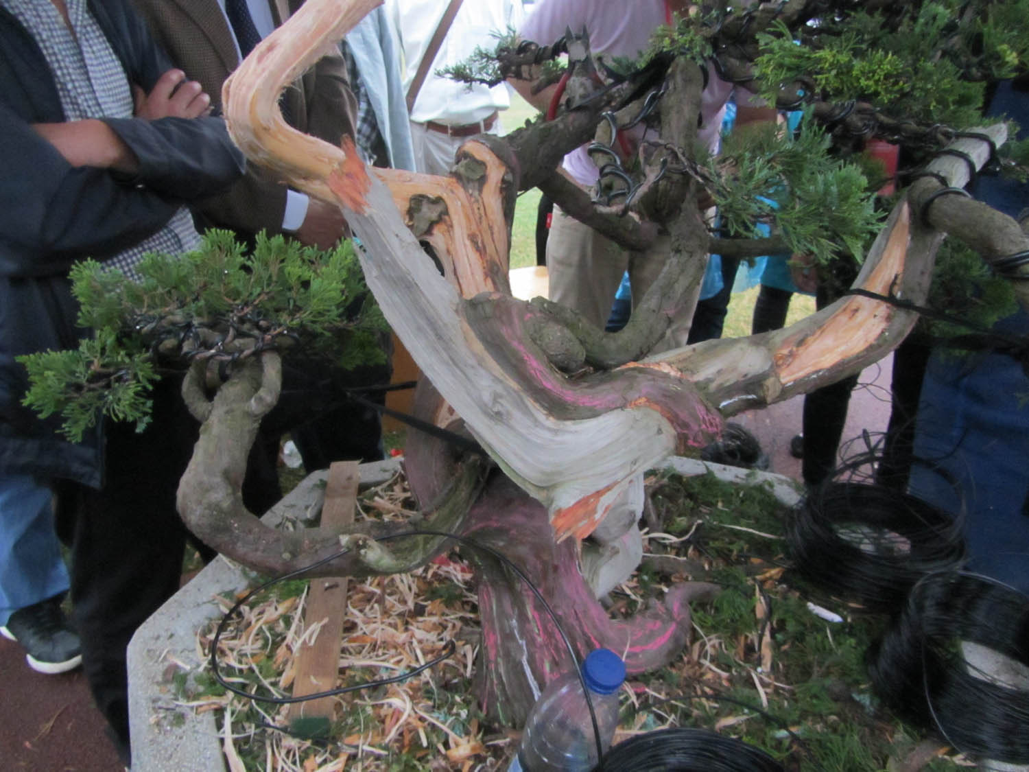 Mr. Cheng Cheng Kung from Taiwan doing his Bonsai Shari SiDiao: Amazing carving of a juniper bonsai as part of his demo in the The China Zuni– 2014 (Yuyao) National Exhibition of Collections of Chinese Penjing Collectors was held on Oct 31- Nov 2, 2014 in Yuyao City, China