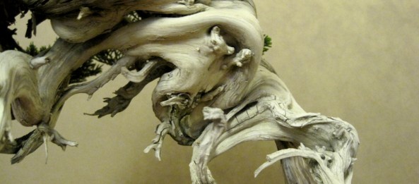 I attempted to create some drama with the upper part of the tree by making a twisted jin, this works superbly on green wood however the heartwood of the tree was too stiff making the bending impossible. I noted at the start of the demo that it may well be cut off if the technique was not successful.