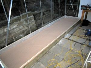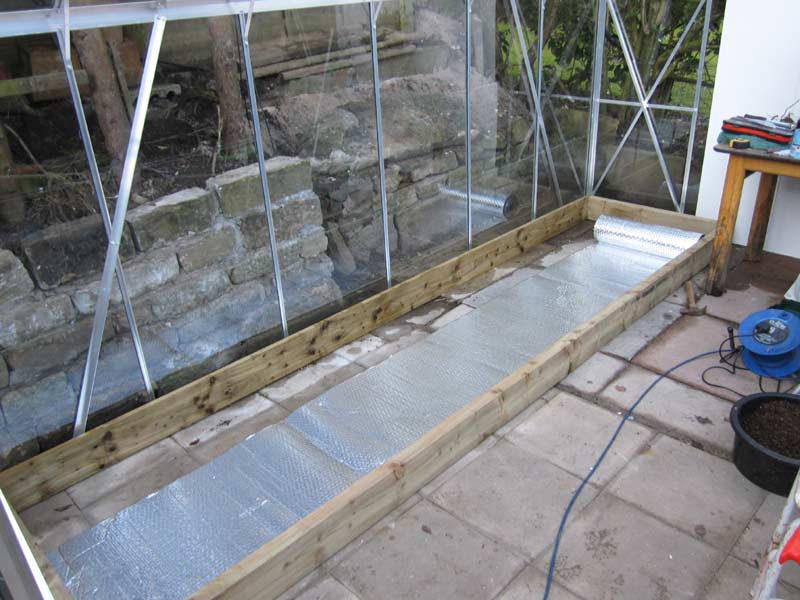 A layer of silver backed ‘bubble’ insulation is laid directly on the floor. I could have used 1” Polystyrene block, but this proved OK.