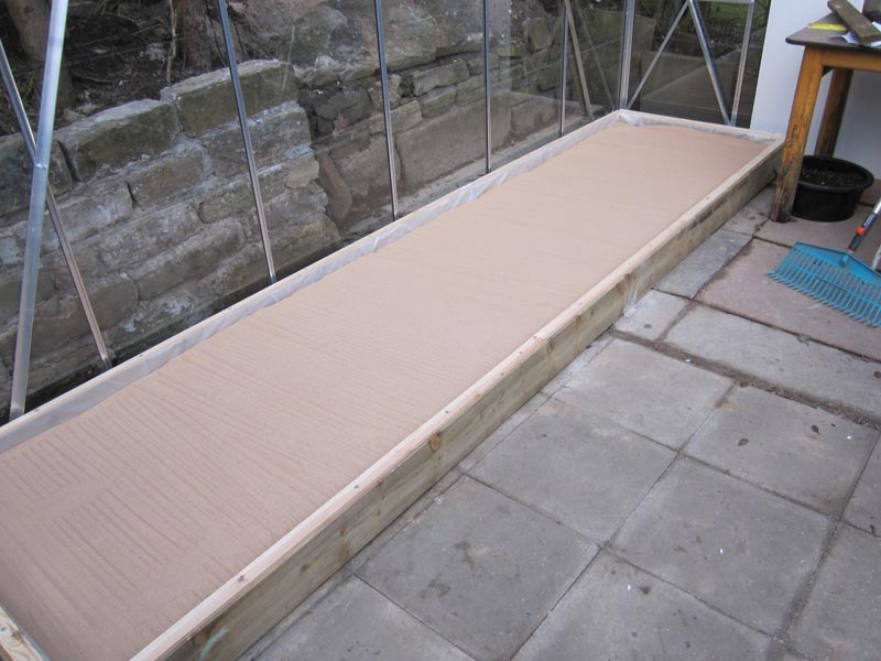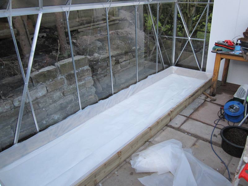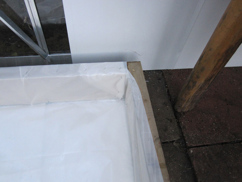 To ensure that the moisture is retained the whole frame is lined with a Heavy Duty Polythene Sheet, and ‘stapled’ into position, particular attention is given to the corners.
