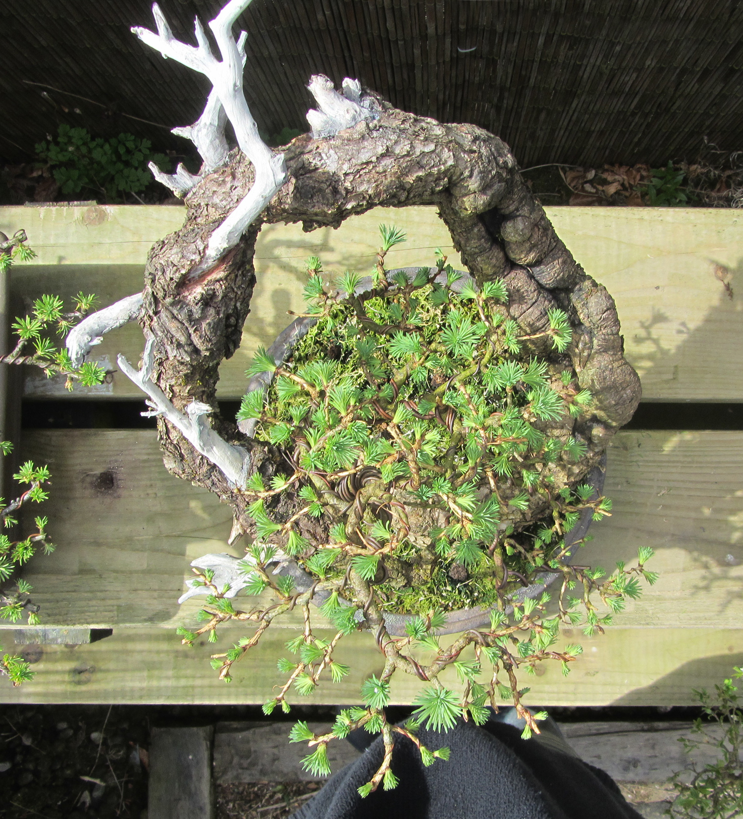 I have worked this Larch for more than 7 years, it is a great tree to work with as the branches are quite flexible, it responds well to nipping back the new growth. The Bryan Albright pot is perfect in every way, colour, size and shape. Here is a photo from 2015.