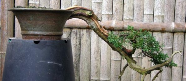 Some times a particular pot can stimulate an idea, this is one such pot. My friend from Holland Hans Van Meer, gave me this pot by William Vlaanderen because I believed this tree would ‘work’. The idea for this pot is Hans. I think that this runt of a tree will develop into an interesting bonsai… you saw it here first…what do you think?
